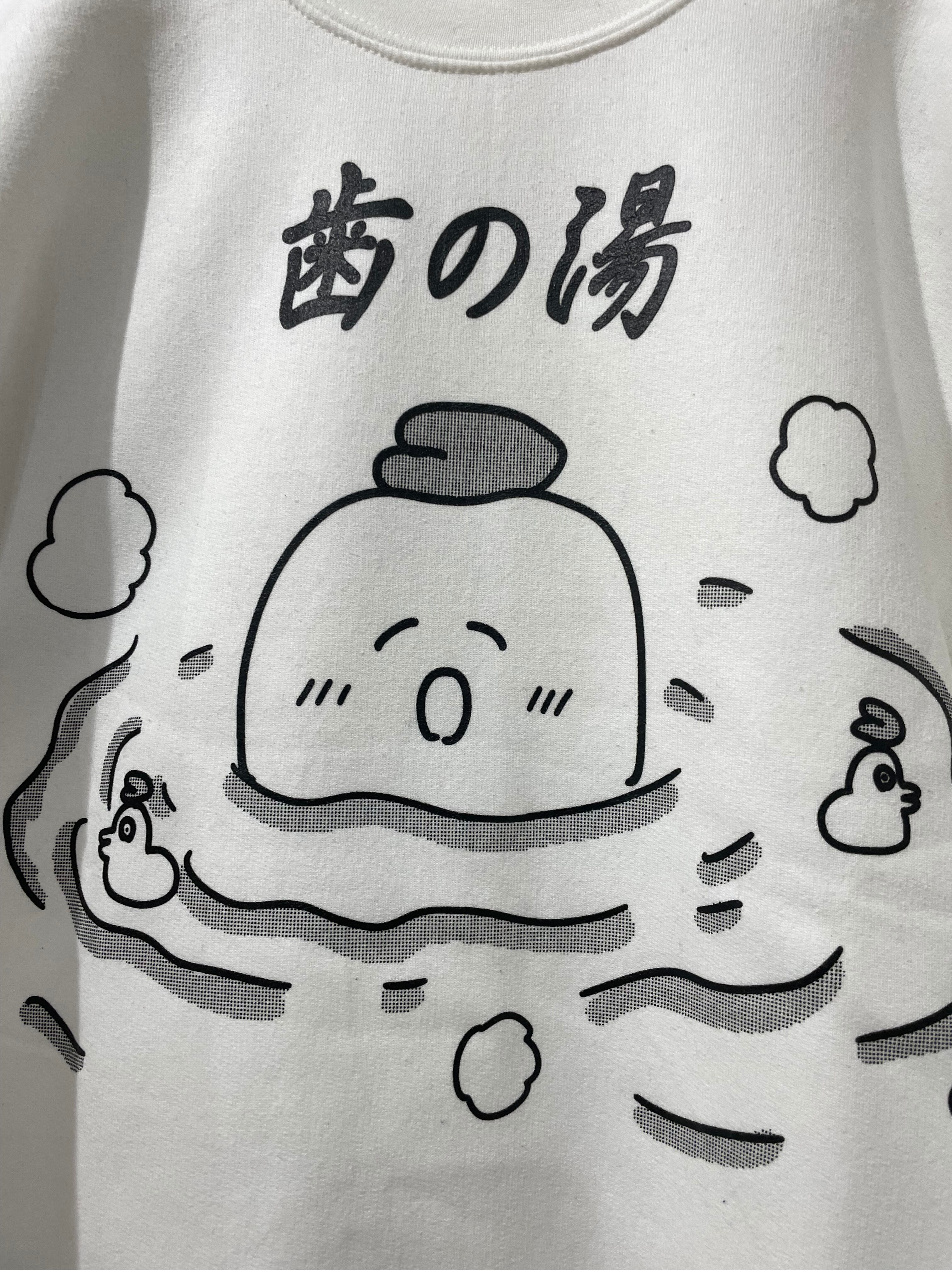 高円寺M.A.Pで販売した歯の湯の長袖トレーナーです。ボディの色は白。銭湯が好きなら是非。