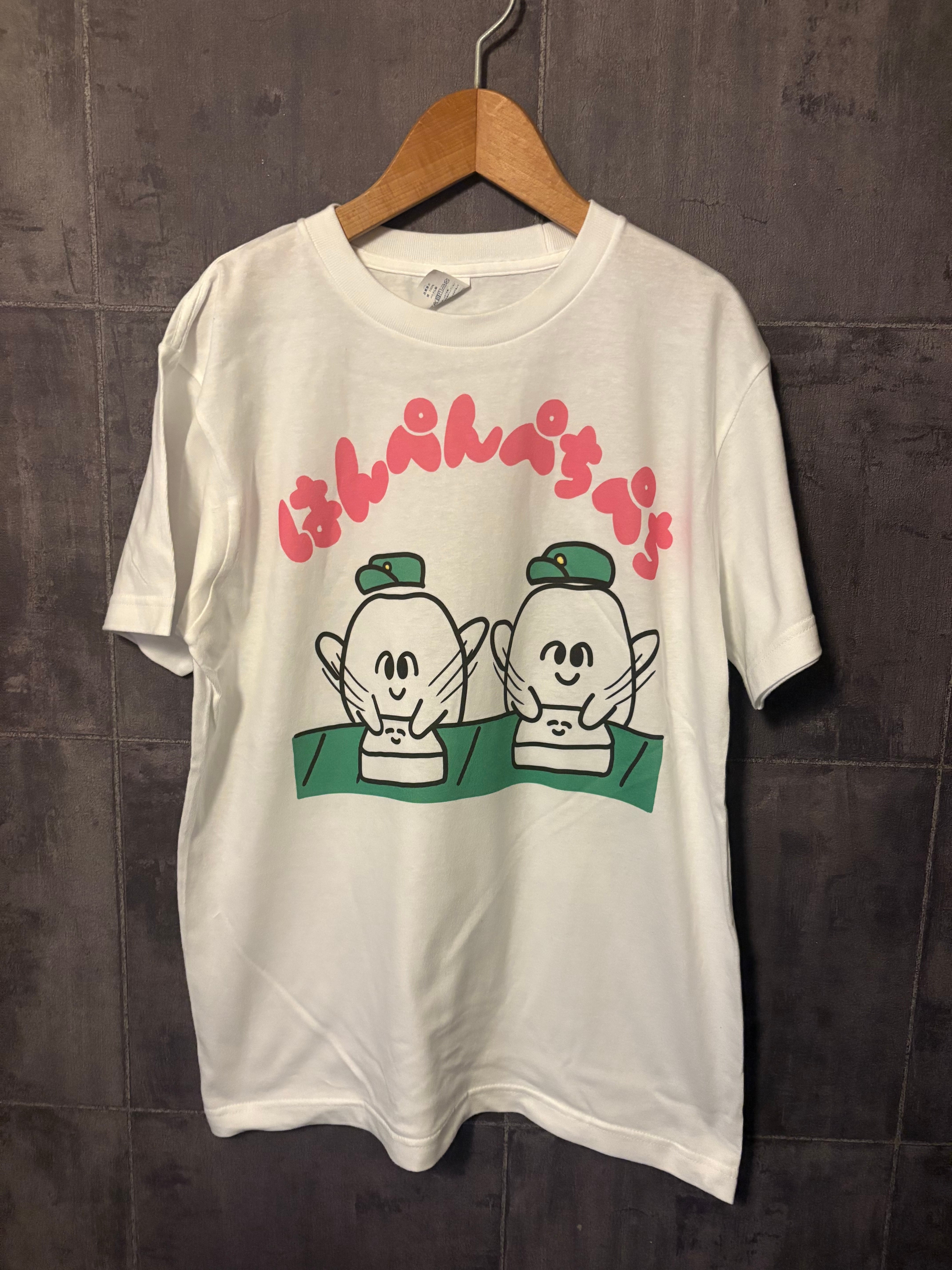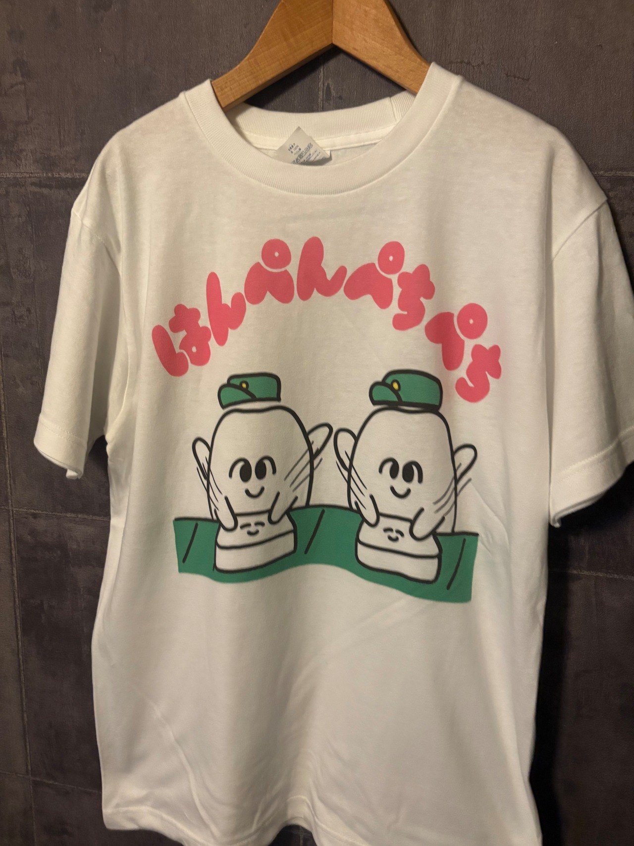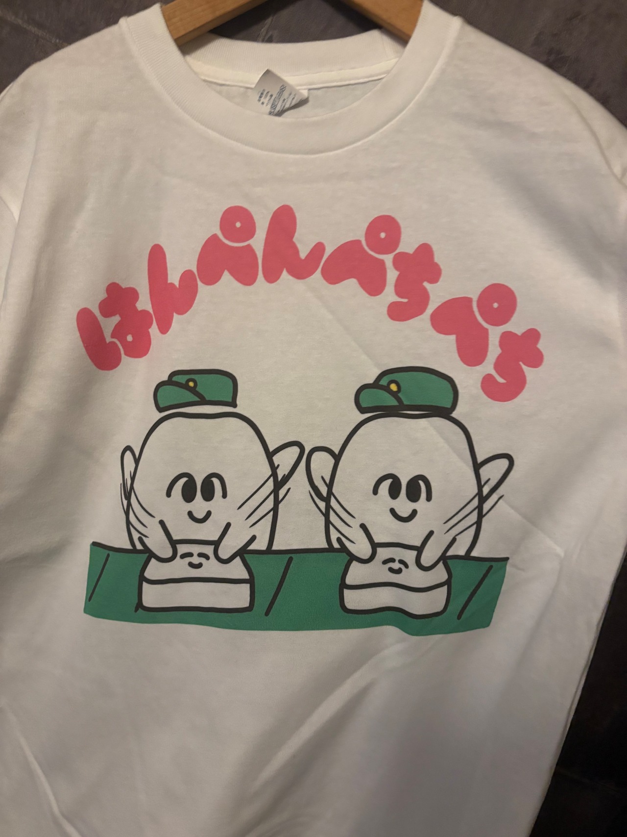 はんぺんぺちぺちTシャツです。はんぺんをぺちべちしています。