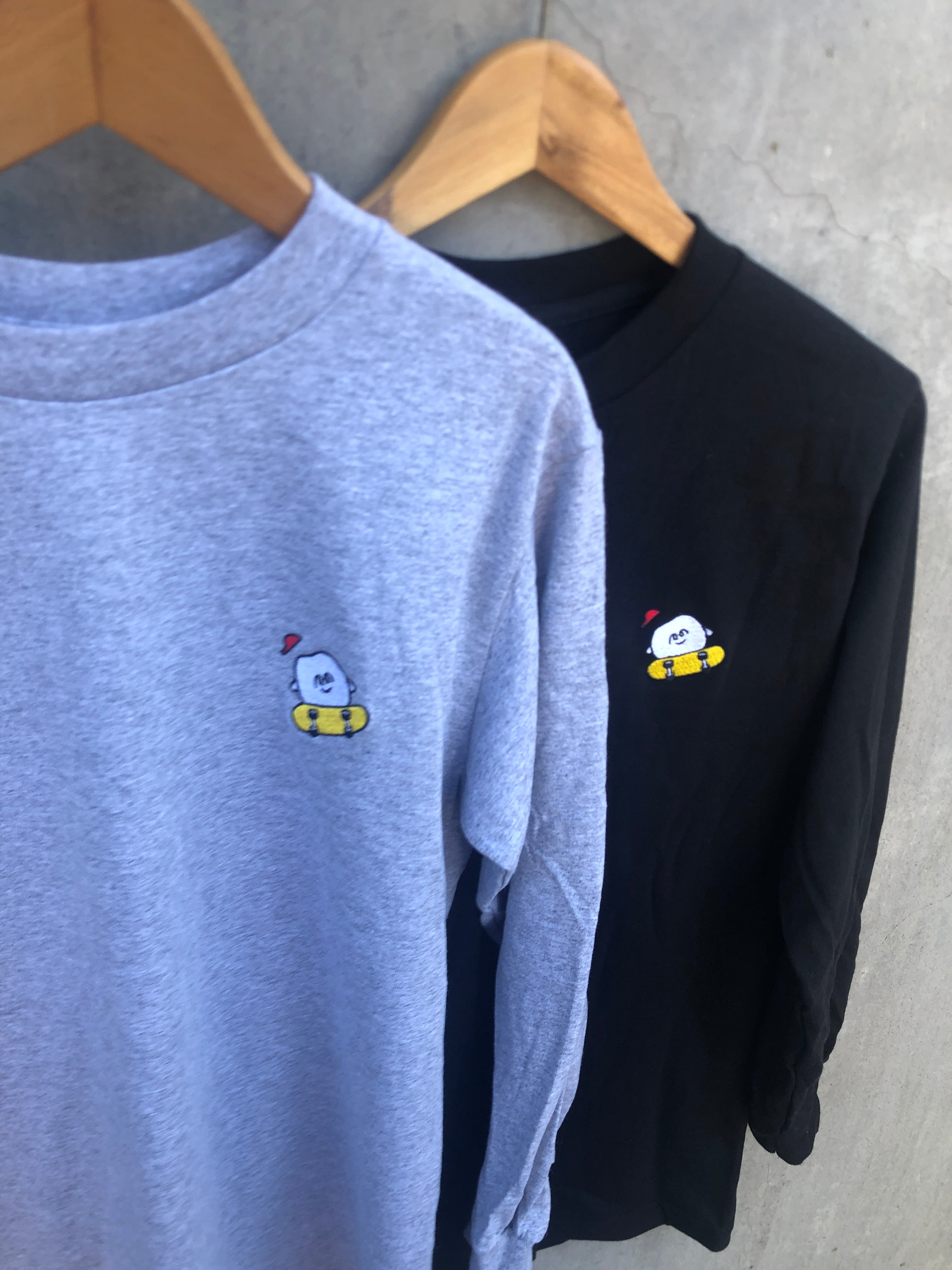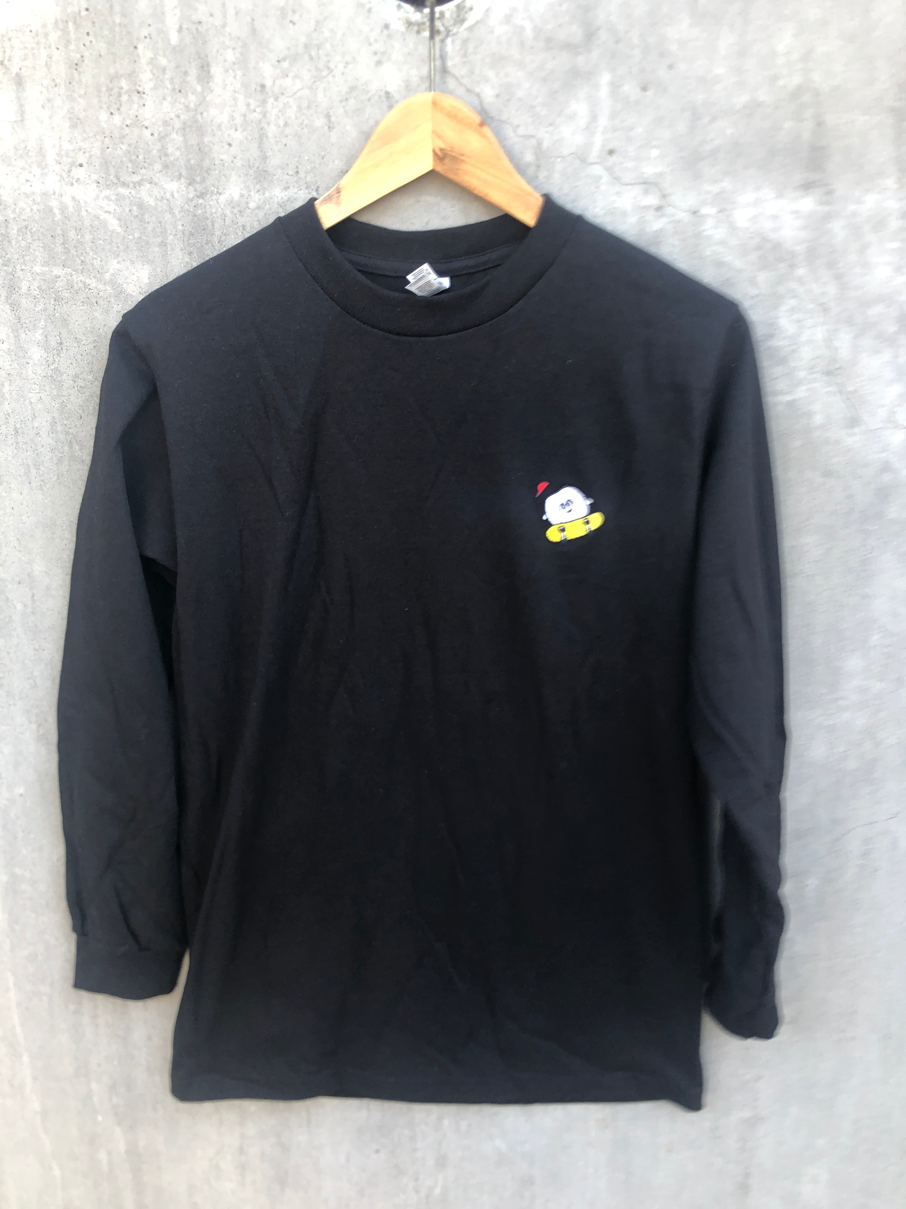 スケボーロンTのブラックです。刺繍にて作成しております。ボディはアルスタイルを使用してます。Sでも若干大きめです。
