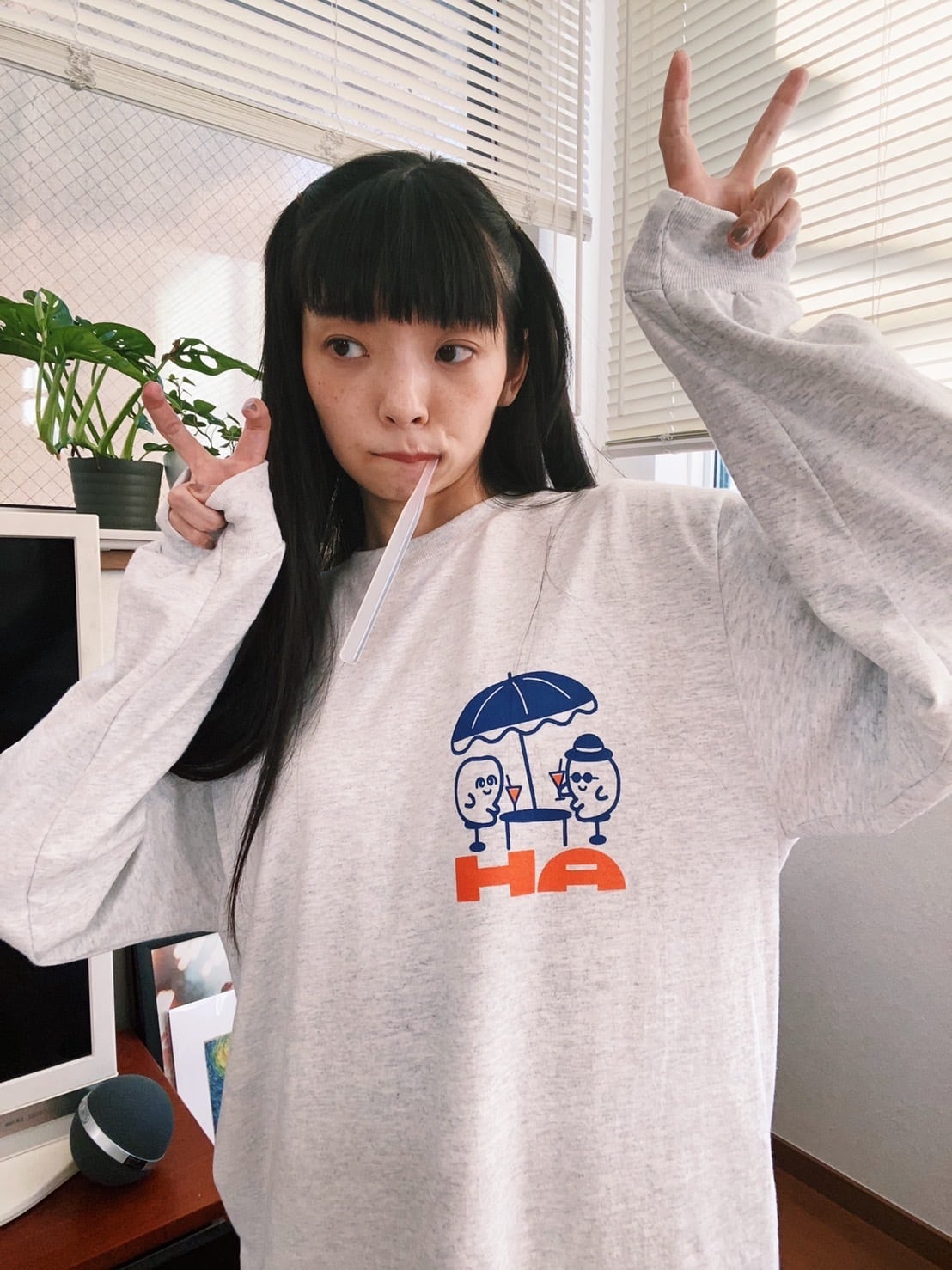 パラソルロンTのアッシュグレーです。胸にワンポイントのデザインです。デザインはDCXOさんにお願いしました。