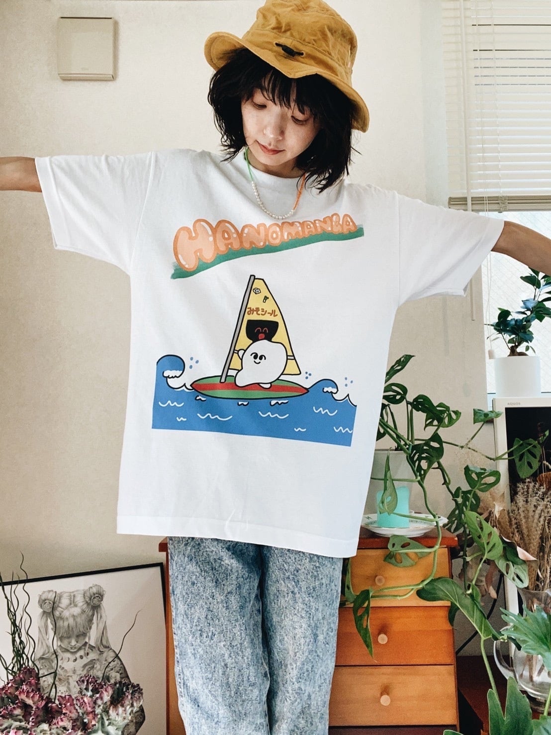 波乗り歯のTシャツです。ボデイはアルスタイルを使用してます。モデルの方が来ているのはMサイズです。前面プリント。