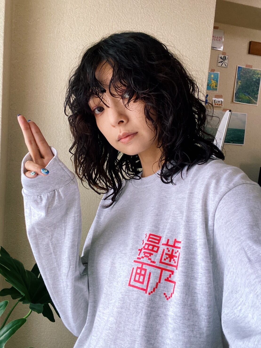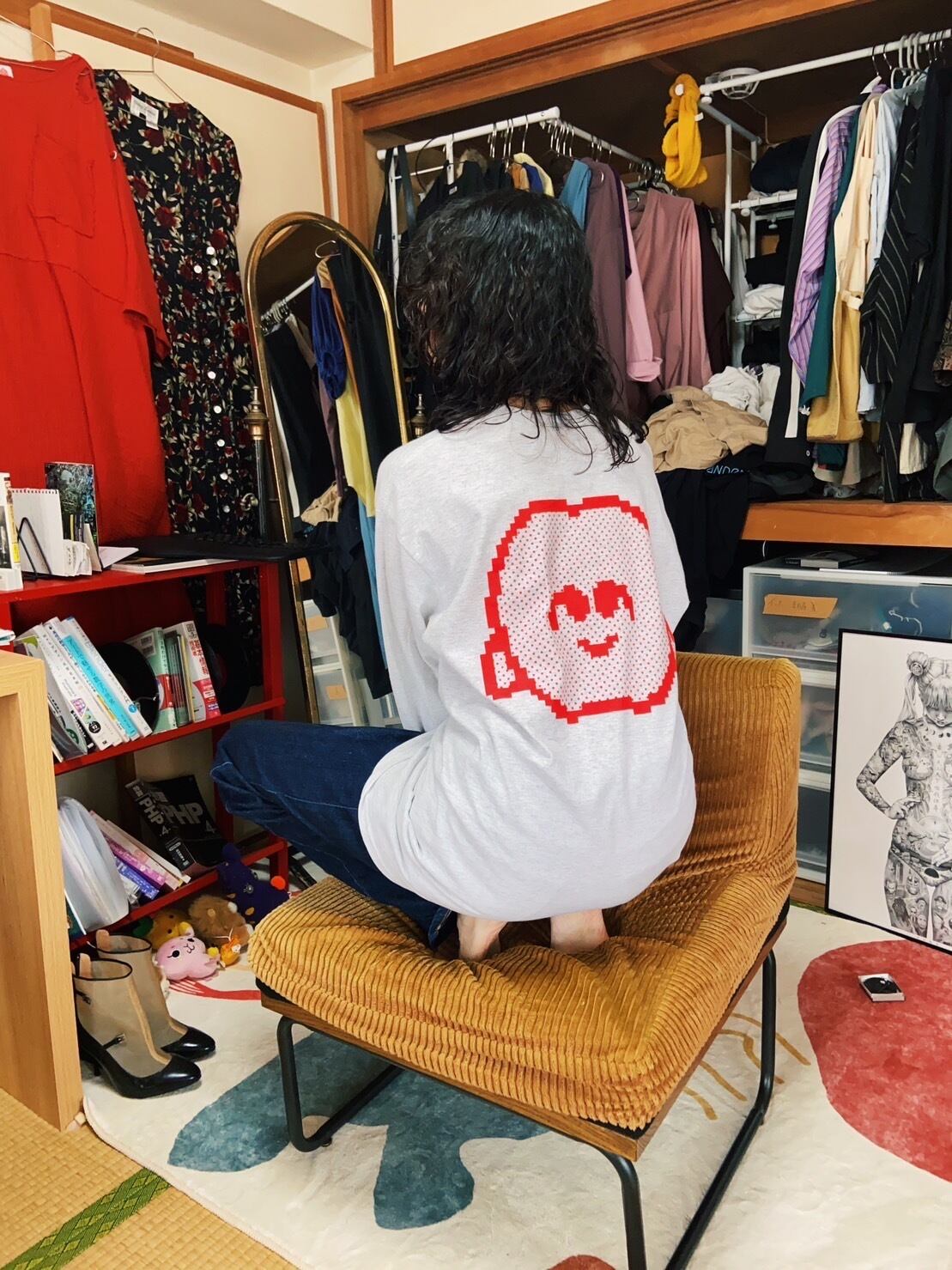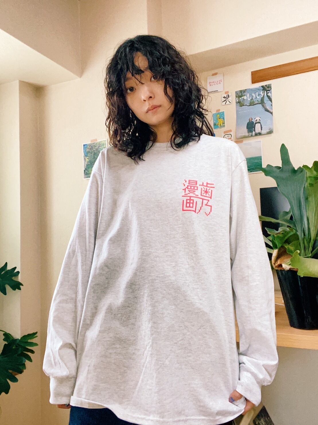 歯の漫画ロンTです。表と裏にプリントしてあります。表は『歯の漫画』の文字が、裏はドットの歯がプリントされててかわいいです。ボディの色はアッシュです。